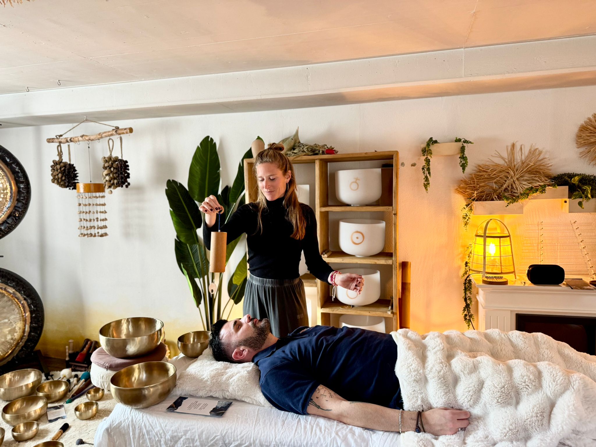 Ce soin est une expérience unique axée sur le toucher bienveillant et thérapeutique. À travers des gestes précis et maîtrisés, combinés à l’utilisation des sons et vibrations de divers instruments, il favorise la relaxation profonde et le rééquilibrage énergétique du corps et de l’esprit.